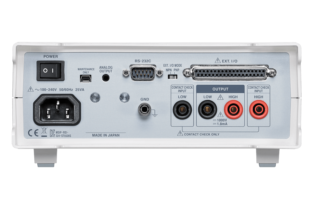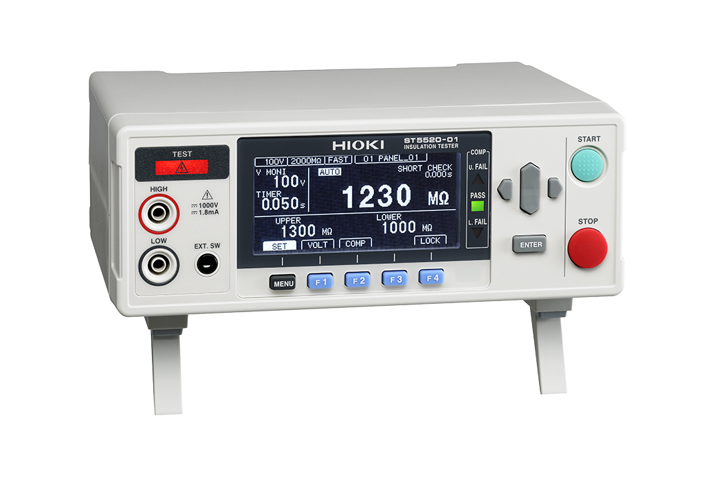 DescriptionThe Hioki ST5520 High Speed Insulation Tester is a benchtop device designed for rapid, automated insulation resistance testing on production lines. It features an external I/O output to enable seamless integration with automated systems, and a test voltage range of 25 to 1,000 V with 1 V resolution. |