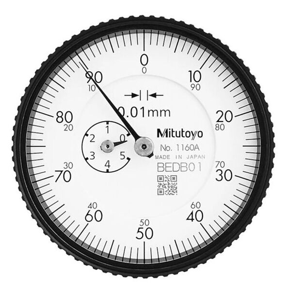 DescriptionThe Mitutoyo 1160A is a Series 1 back plunger dial indicator, a mechanical measuring tool with the measuring spindle protruding from the back instead of the bottom. This design makes it well-suited for mounting on inspection jigs or machine tool tables, especially in limited spaces. |